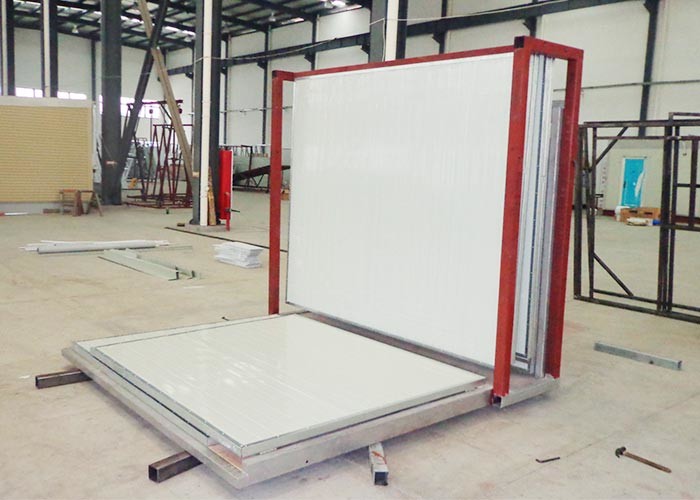 Wall panels are made of 50mm with a 10kg density EPS foam sandwich panel. All panels are fixed in the factory and hinged with a roofing panel. The thickness of steel for the panel is 0.35mm outside and 0.35mm inside.