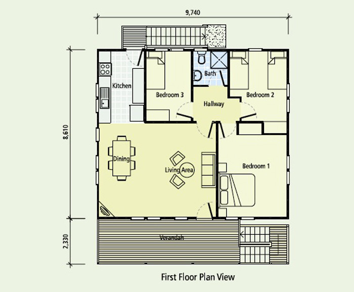 - There is 93 m² floor and 17 m² verandahs,totally 100 m²