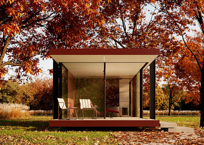 Colorful garden studio are highly customisable. Colorful garden studio innovative modular, steel structure leaves room for multiple layouts. While the roof and flooring volumes are set, everything from the actual function of the space down to the walls, windows and finishes is up for tailoring within the selected colour palette. A clever design that allows for a swift production and an easy implementation.